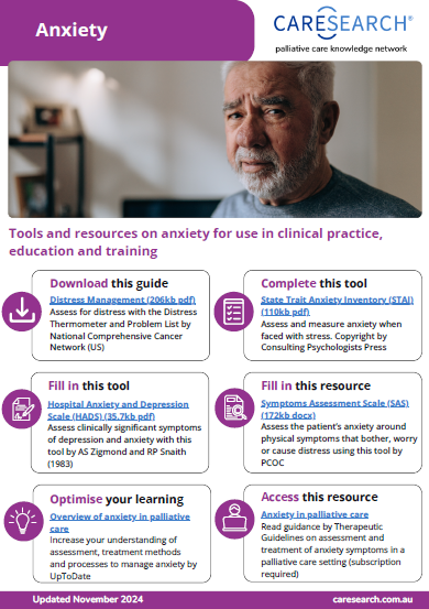 • Cultural differences significantly influence how patients express and experience anxiety in palliative care settings. Tools like the Hospital Anxiety and Depression Scale (HADS) are recommended for use in diverse populations to ensure culturally sensitive assessments, recognising variations in expressions of distress across different cultural backgrounds.