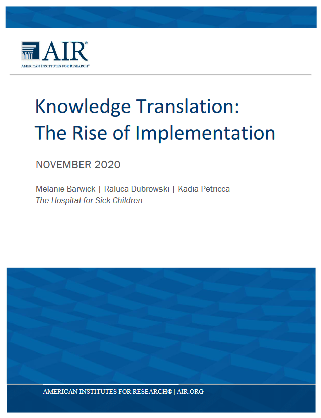The field of KT implementation has evolved over many years and led to the development of numerous models to guide activities. The following video features a seminar from Dr Melanie Barwick and provides practical insights into the core KT activities of implementation and dissemination, the effort required, and how our understanding about engaging with KT has changed since its first inception.