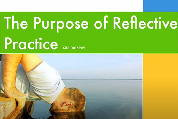 Reflective practice in health means developing critical thinking skills by reflecting on an area of practice and looking to improve it. It helps to engage in continuous learning and to gain insight into yourself or your practice.